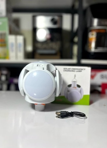 پنکه شارژی سولار پنج پر کیفیت عالی دارای آویز مجهز به پنل خورشیدی 5 حالت نور دهی