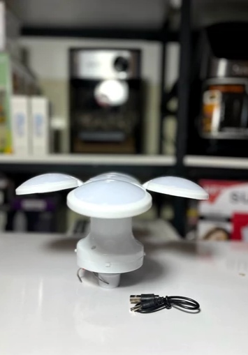 پنکه شارژی سولار پنج پر کیفیت عالی دارای آویز مجهز به پنل خورشیدی 5 حالت نور دهی